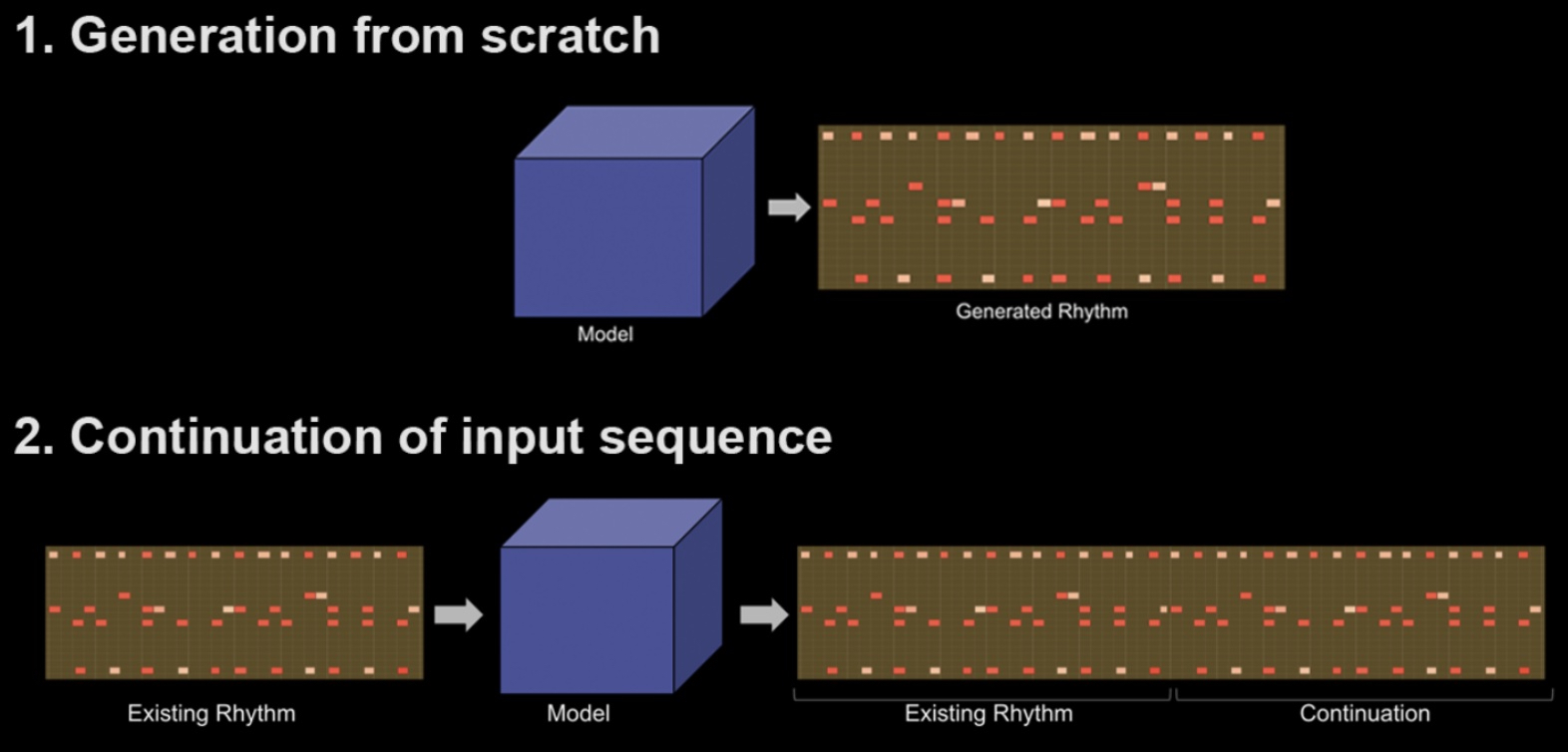In my first year, we developed an offline long-term drum generation system using Transformer-XL architecture.